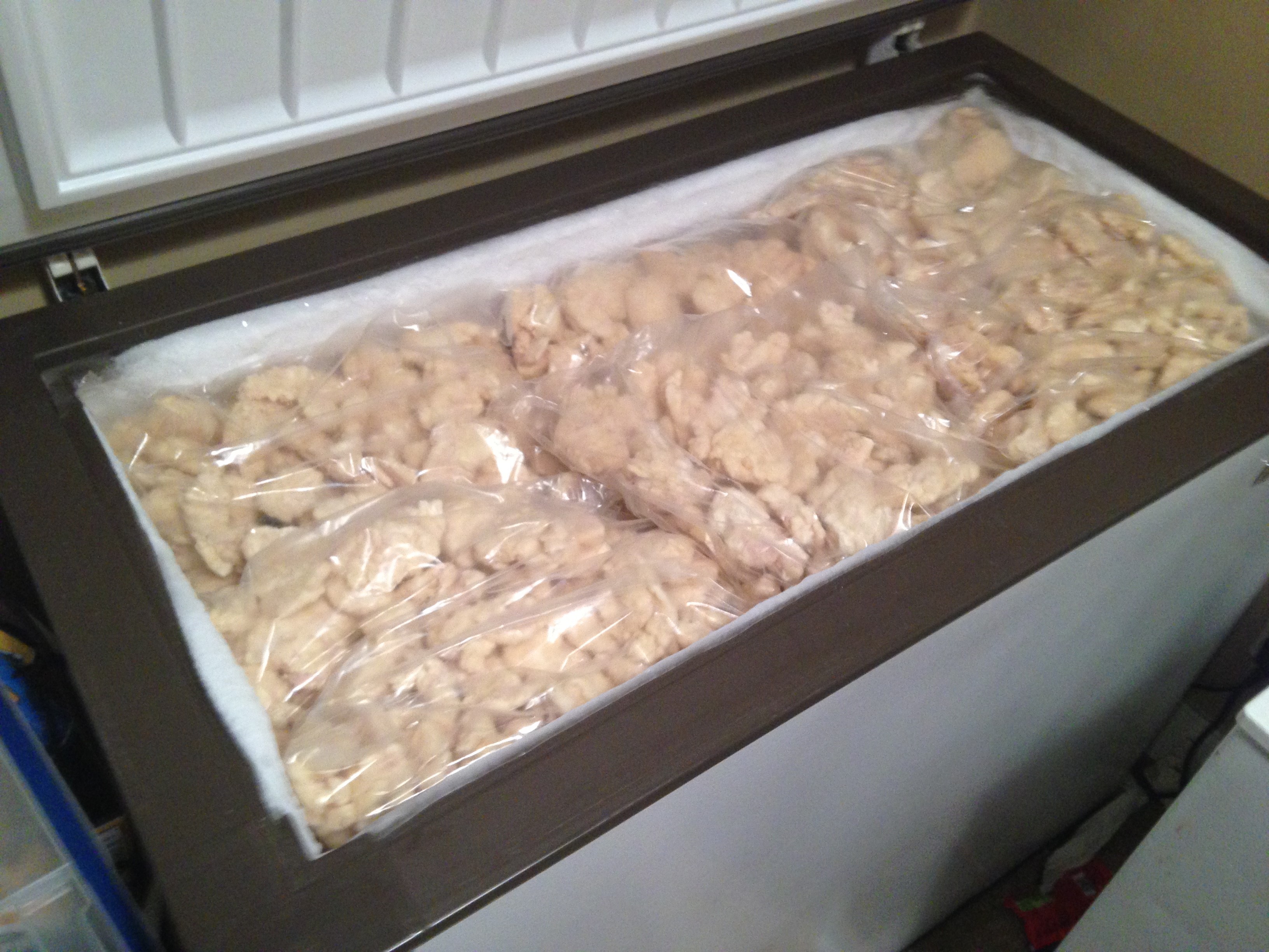 Other food donations included party leftovers from an AllSouth Appliances ladies night, 150+ Panera Bread meals and 200+ chick-fil-a chicken biscuits and popcorn shared from the leftovers of the Freedom Conference at Church of the Highlands Grandview, lettuce and mushrooms from our organic farmer partner, more popcorn from the Giving Hope Outreach from Church of the Highlands Grandview, and our normal 15 weekly food rescue pickups. Strong Arm Ministry Food Bank of Albertville, AL, also shared with us two pallets (348 bags) of frozen chicken nuggets that is a miraculous supplement to our food boxes as we were not able to purchase enough meat for our food boxes. God always creatively does it!