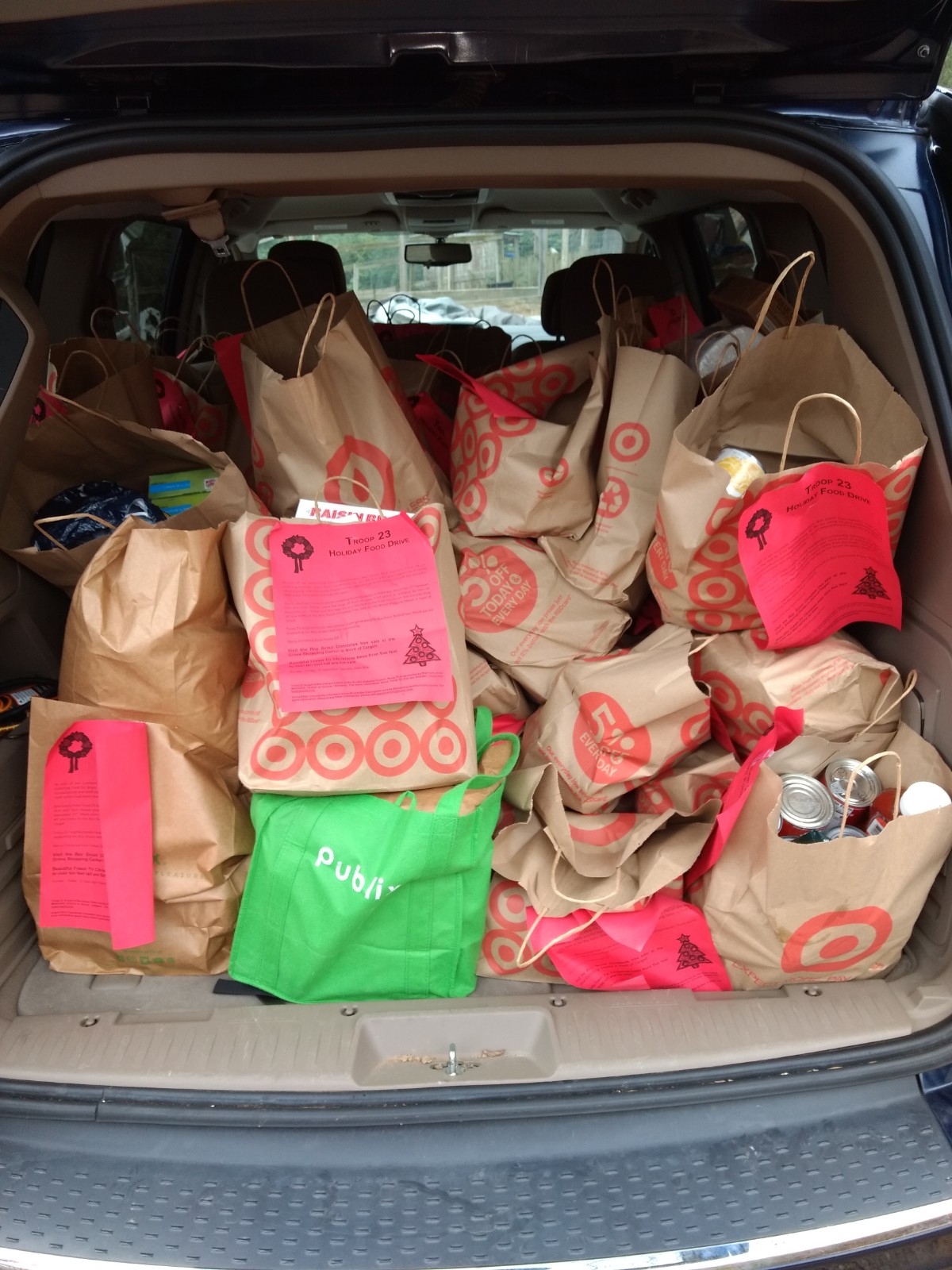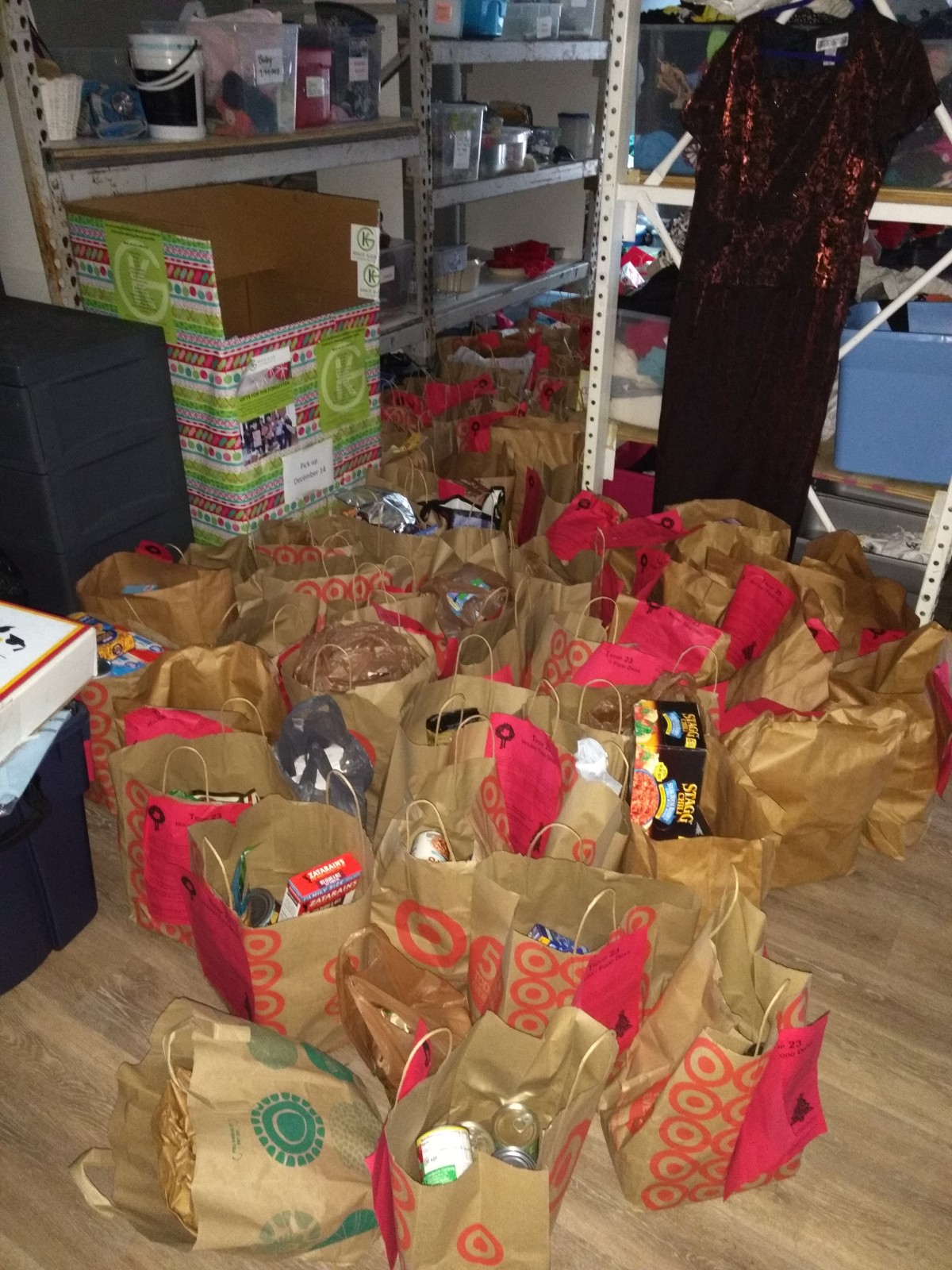 Then Boy Scout Troop 23 called us on Saturday, December 15, 2018, to deliver 163 brown grocery bags full of non-perishable items to our office. Volunteers worked all day Monday and Tuesday sorting, organizing and shelving all the non-perishable donations.